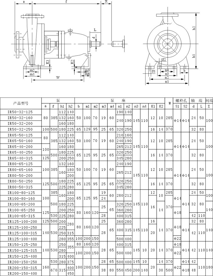 9.本IR型系列泵均按1.6MPa规格设计,所以选择管路法兰时应与之相匹配。