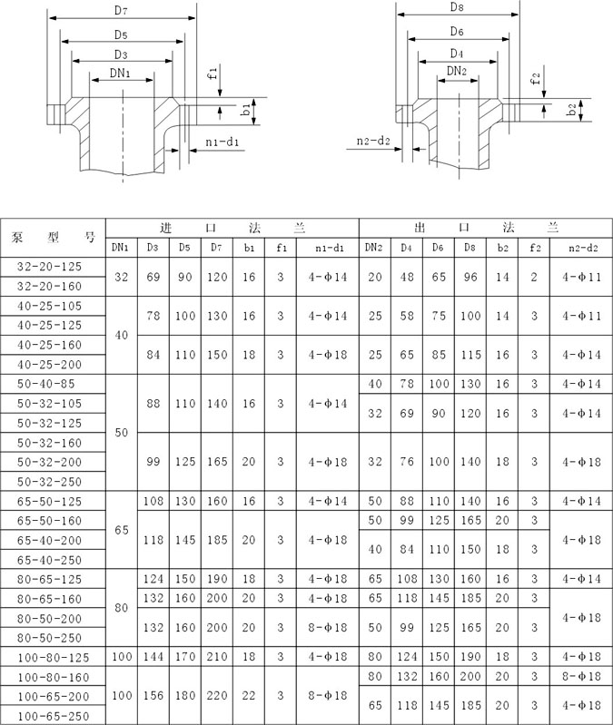3、被输送的介质及其温度应在泵材允许范围内。泵的使用温度<280℃,最大工作压力1.6MPa,密度不大于1840kg/m3,粘度不大于30cm2/S的不含硬颗粒和纤维的液体。特殊工况应严格按合同协议规定。